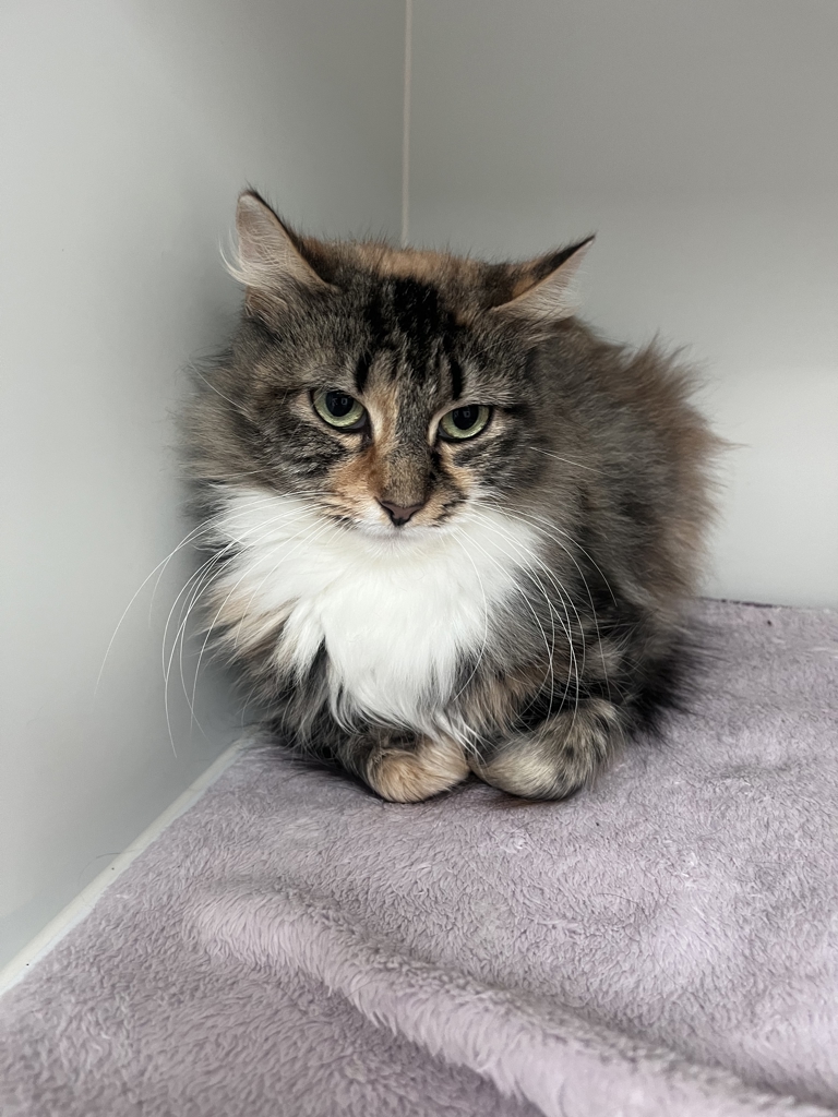 At just 8 months old, Calliope is a gentle soul with a shy heart and a quietly curious mind. She's the kind of kitten who doesn't rush into the spotlight - instead, she takes her time, observing the world carefully, one safe step at a time.