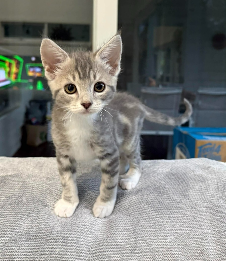 Meet Lyra, a charming silver-grey tabby who is ready to bring joy and companionship into your life. With her distinctive coat and playful nature. Her striking appearance is matched only by her gorgeous personality, making her such a delightful addition to any family.