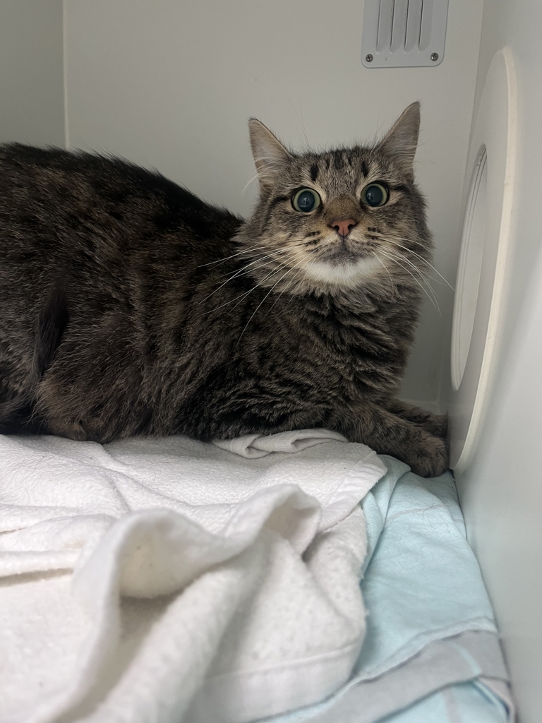 At first glance, Autumn might seem a little shy, quietly taking in her surroundings and sizing up the world with those striking, unforgettable eyes. But give her a moment... and especially a gentle head scratch... and she melts right into you like she's always belonged there.
