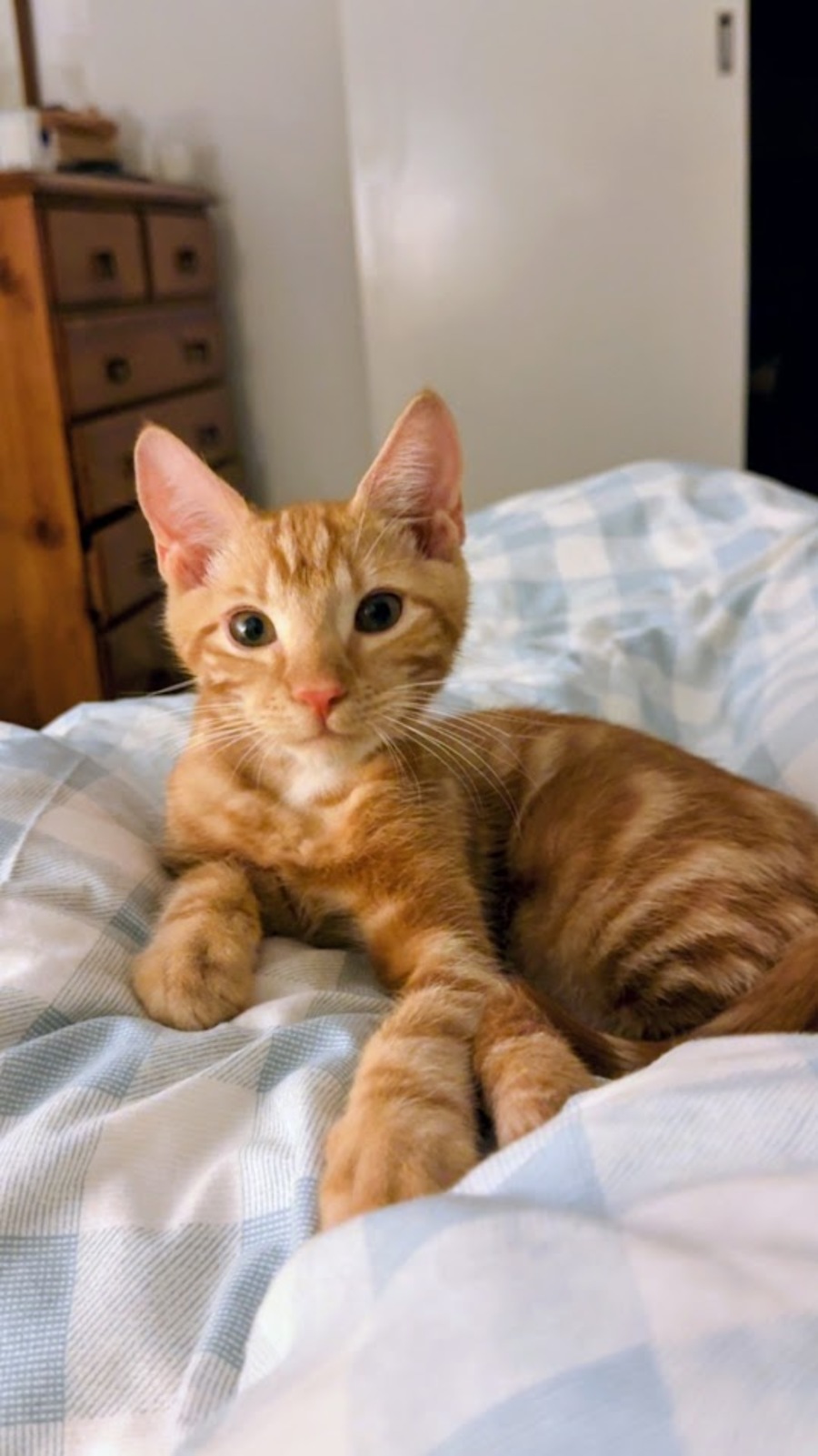 With his sleek coat and piercing eyes, Angus is not just a looker but a little powerhouse of affection. Whether it's chasing after a feather toy or curling up on your lap for a snuggle session, Angus knows how to make the most out of every moment.