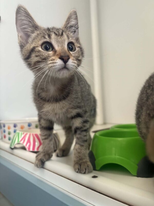 Hey there, I'm Rose. I’m a friendly and affectionate kitten who would suit most homes! My playful paws are always ready to pounce on anything that moves. I love playing with wand toys and mysterious shadows on the wall! When I’m finished playing, I love nothing more than finding a warm lap to curl up in. I have perfected the art of the irresistible purr. It's like my secret weapon for getting all the cuddles and chin scratches I could ever want. Life's just one big, exciting string of moments, and I'm here to make every second count – whether I'm chasing my tail or sharing some purr-fectly quiet time with my favourite humans. So, if you're up for a bundle of furry fun and a lifetime of companionship, please consider adopting me!