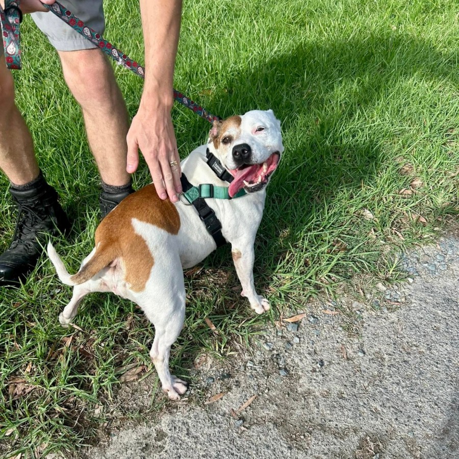Confident, friendly, and full of affection, Shelly adores people and will happily soak up all the love you can giveâespecially tummy rubs. She walks nicely alongside other dogs, but isn't really interested in play.