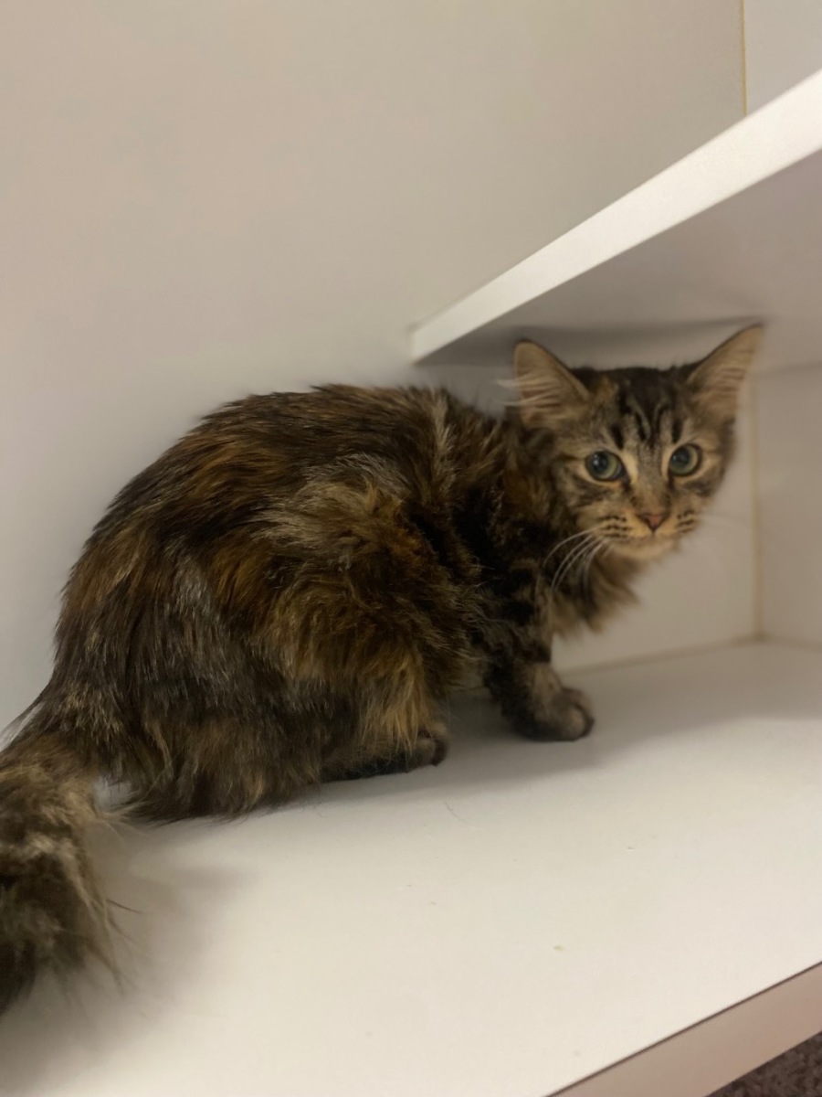 Róisín is a bright, friendly little kitten with a warm, welcoming nature that makes her instantly lovable. She’s the kind of girl who trots over to say hello, tail up and eyes shining, ready to make a new friend. Whether she’s exploring a new corner or curling up nearby, she brings a gentle sweetness to every moment.
