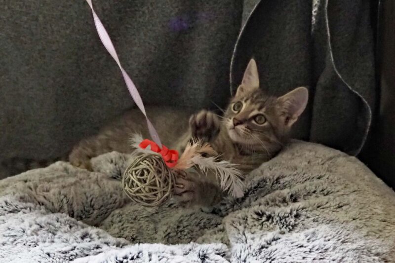I'm Momo. I'm a young cheeky little cat who is ready to find a home to call my own. I was born in shelter care and was in a Foster Home with my mum before coming back to go up for Adoption, I've started to grow into a lovely entertaining cat who has a desire to play and nap all day! My ideal home will have some loving people to care for me and provide my basic needs, lots of natural sunlight I can bask in when it's cold, ample toys I can play with, and lots of cozy sleeping areas, maybe I could even sleep on a human bed with you? I think I'd like that very much. If you're looking to welcome a little kitten into your household, pop in and see me or give the shelter staff a call to arrange a date!