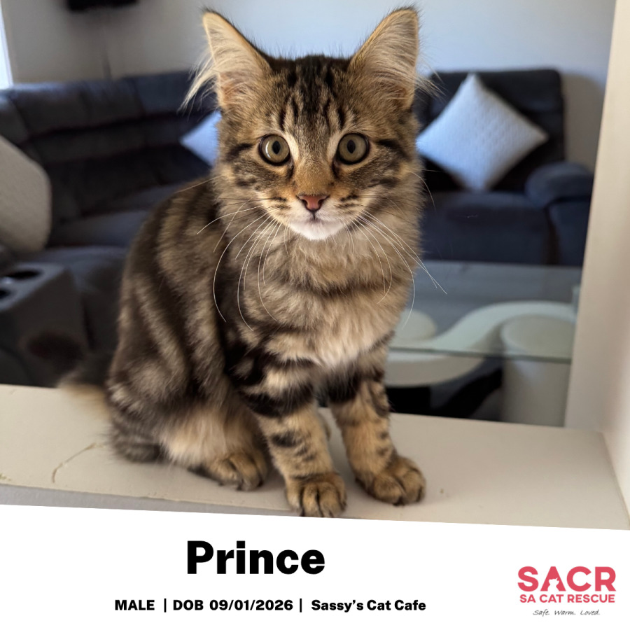 Prince's adoption fee is $195 which includes desexing, microchipping, parasite prevention, and initial F3 vaccination.