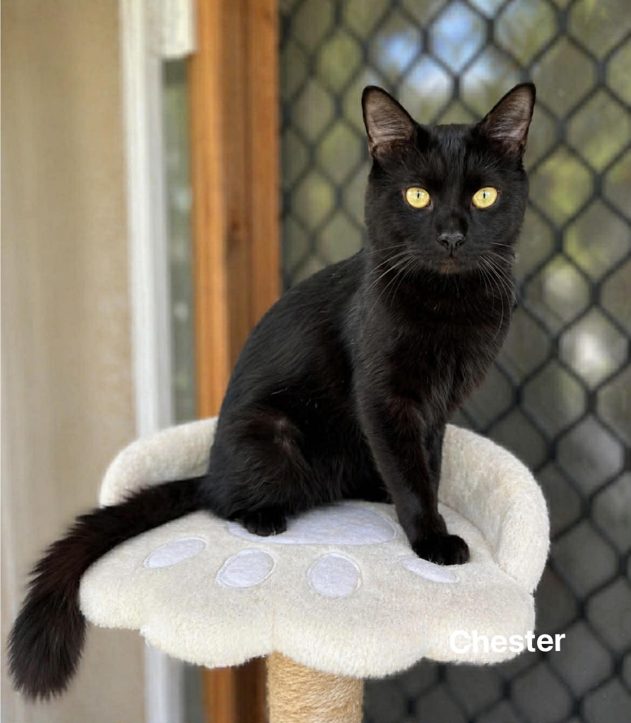 Chester's glossy fur invites endless pets and snuggles, as he delights in the affection and attention of those around him, but he's known to enjoy his independent nap time. His presence adds a touch of elegance to any room, with his graceful moves and calm demeanor.