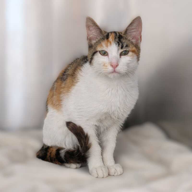 Hi, I’m Stella, a female Domestic Short Hair kitten. I’m 5 months old. My energy level is average, so I love a comfy nap spot and gentle play between cuddle sessions. I’m a curious explorer who adores climbing a cat tree, chasing a feather toy, and settling on a warm lap for purrs afterward. I have no known child-related issues, so I’m ready to be a loving part of a family that’s patient and kind. I dream of a cozy indoor home where I can grow into a confident, affectionate companion who greets you with warmth each day. If you’re seeking a sweet, curious partner to share daily moments and adventures, I’m your girl. Could I come home with you?