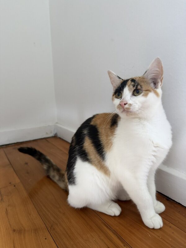 Hi, I’m Trixie—female Domestic Short Hair kitten, 5 months old. I’m a bundle of energy and curiosity, always ready to pounce on a toy, sprint across the floor, or chase a feather wand. When I’m not exploring, I’ll curl up in your lap and purr the moment you stroke my back. I’m a high-energy kitty who thrives on play, but I also crave gentle affection and steady kibble-time. I do best in a quiet, calm home where I can unwind after zoomies and feel safe to nap in sunbeams. I’m best with kids 6 years and older, so if your family is patient and has room for a spunky little friend, I’d be thrilled to meet you. I’ll reward you with loyalty, warmth, and plenty of playful moments. If you’re looking for a curious, affectionate companion to grow with, I’m your girl. A peaceful home environment and a lot of enrichment will help me shine. Let’s meet and start our adventures together!