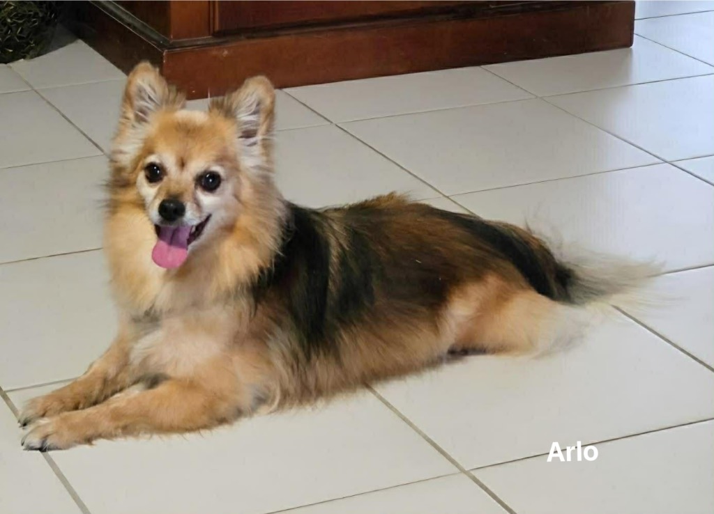 At 10 years young, Arlo may be a senior, but you’d never know it! He still loves exploring the backyard, happily trotting around and greeting visitors—both human and canine—with a wagging tail and a big grin.