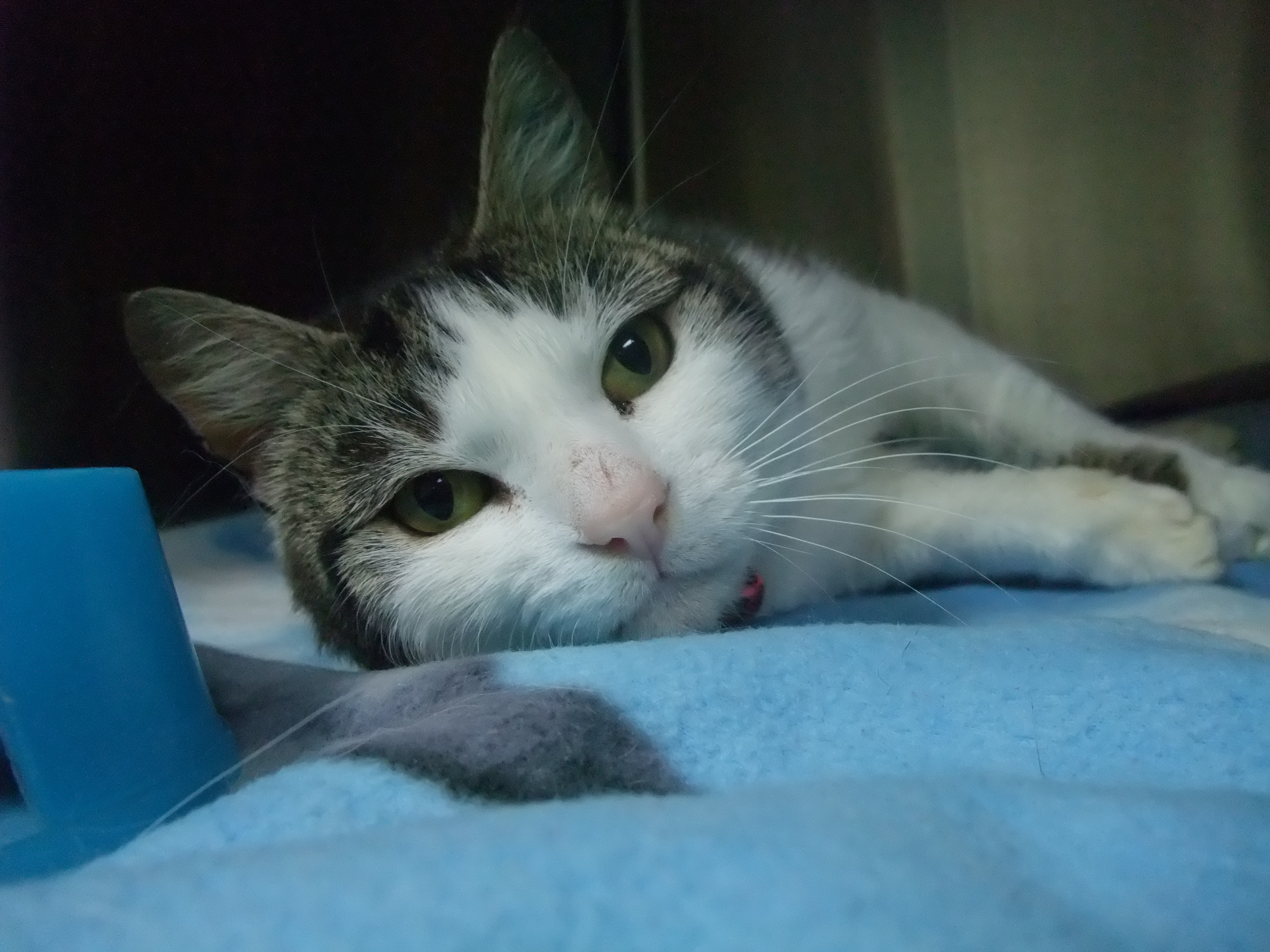 Hello! i'm wizz-fizz and i am beautiful young lady looking for a new forever home! i am a very outgoing, talkative and smoochy young lady. My favourite things include lounging around, tummy rubs, people and purrrring! i would need to be an inside only kitty. Please come and meet me now!!!
