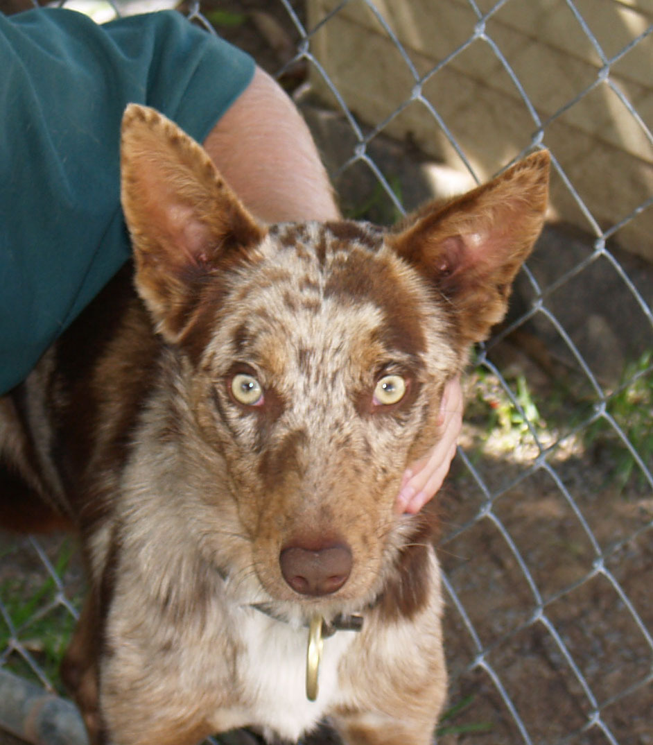 Didee is a pure red merle australian koolie who was purchased as a pup by a farmer running cattle. She is a little timid and frightened of loud noises, such as loud voices, the crack of a whip and thunder. She cowers and runs home to hide. She is not destructive. Once she gets to know you she is all over you for cuddles, she is good with other dogs and kids. She does not like the screaming of small kids and will go and hide if it gets to much. She is a very loving dog who wants to please. With tlc and some confidence building she would make a wonderful agility dog as she is extremely intelligent. It has to be someone would will spend the time to give her love and confidence and she will do anything for them in return. She is micro-chipped, de-sexed and immunised