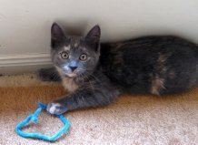 Hi, my name is buffy and i was rescued from behind a service station with my brother spike. I am a very pretty 12 week old blue cream tortie with a soft short coat and a cute squeaky little meow i am a bit shyer than my brother but i am learning to enjoy cuddles and pats and i am very gentle. I love to play with my foster mum's cats and dog and i would do well in a quiet family without young children, but with another cat or kitten to keep me company. I have so much love to give and would love to find my forever home soon