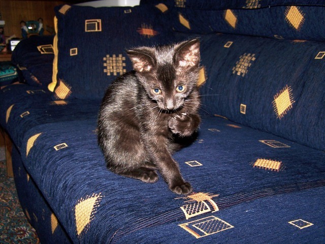 Jetson is a very shiny black domestic short hair kitten, he has a very friendly playful nature & is used to other cats & dogs