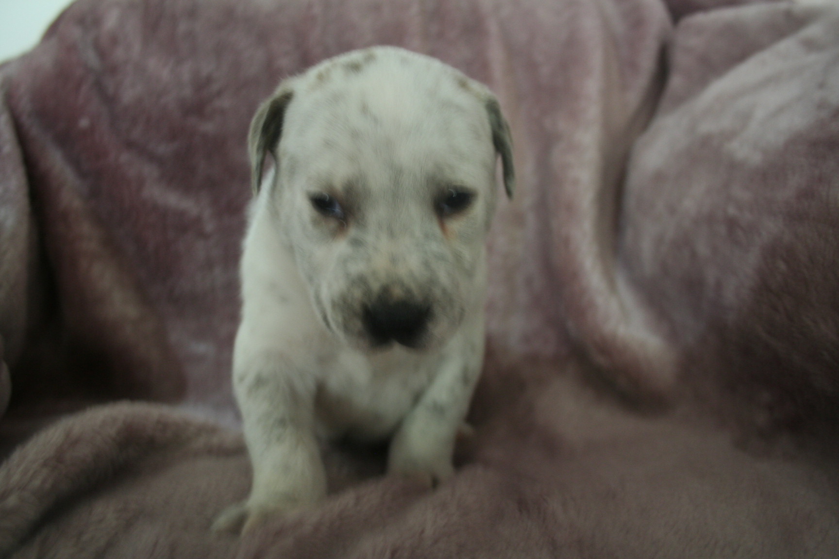 polar bear is named polar bear because he was pure white until his spots started coming through. He is adventurous and has a waggly tail and very cute!
