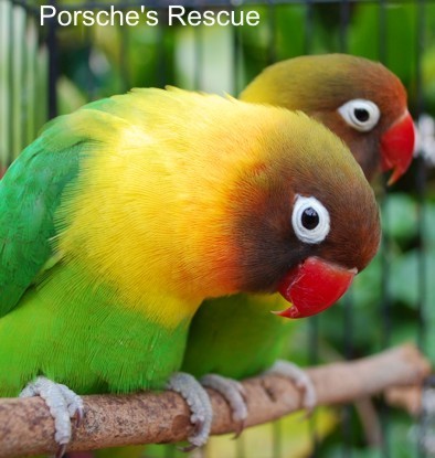 Cosmo and squirt are fischer lovebrids who have been through a rough time. Regretably, their owner commited suicide, and they went to live with one of his friends. This person lived in a unit, and due to the high volume of noise the birds make, was given notice to remove them asap. The pound gave them our number, and we agreed to help out by finding a new, loving and stable home for these two gorgeous characters. Cosmo and squirt are 3. 5 years old, and lovebirds can live till 10-20 years. For this reason, whoever adopts must be aware of the long-term commitment. They love broccoli, cuttlefish, millet, seeds and other vegies. They have been really well looked after, and their adoption fee includes enclosure and accessories. These birds do not have their wings clipped, and need time out of their enclosure every day to fly around. If you would like to adopt cosmo and squirt, or have any questions, please fill in an adoption form on our website: www. Porschesrescue. Com