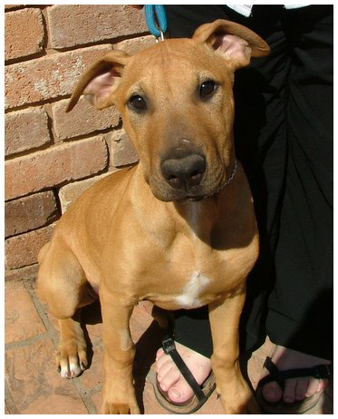 Well look at this stunning girl, she is absolutely delightful. This girl with the beautiful rich red coat and appealing face is going to become some lucky person’s perfect companion. With her interesting breeding china will grow into a very large dog and her new owner will need to supply her with good quality food and only gentle exercise until she is mature. China is very placid, she loves to play with other dogs, is good with cats, is house trained, crate trained and is learning to sit. China doesn't bark, she sleeps inside at night and at the moment spends most of her time inside, but loves to play outside when she gets the chance. China will need to attend puppy pre school and get plenty of time to mix with people and dogs while she is young to ensure she is well socialised. This little big baby girl will be going to a special home as she is very special herself