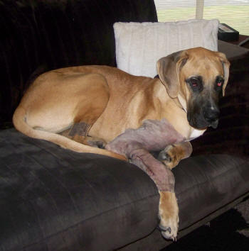 Introducing jake and astro - two beautiful great dane x puppies with a story of their own. As puppies they were dumped at wyong pound and came into care in early august. Since then they have been under the care of brian, a very kind vet from belmont veterinary clinic and brian and his team have been fantastic working with the pups and trying to keep the costs down where possible. Up until now the pups have needed to go back for cast changes, antibiotics and general check ups and the costs so far have been $2000. The pups may look normal with their casts on but they are suffering with a condition known as "knuckling over". This is a deformity in their legs where the joints and bones grow at different rates and in turn this leaves them crippled. It is not uncommon in large breeds and, if caught early, can be corrected. Due to the severity of jake and astro's condition they will both require surgery so that they can lead a normal life but without this they have an uncertain future. Due to the complexity of the surgery, they now need to be seen by a specialist surgeon and we are currently seeking donations towards their treatment as jake needs to have his surgery immediately. At the moment astro is coping with having half casts and will need surgery further down the track but jake's situation is desperate. Update 13 february: jake and astro are no longer available for adoption as they are now going to stay with their foster carers. Thanks to the kindness of sponsors, both dogs underwent surgery at sash (small animal specialist hospital) and, as no further donations are needed, their appeal is now closed. We thank everyone who helped make it possible for jake and astro to have the surgery and follow-up treatment they so desperately needed. Listed 26 october