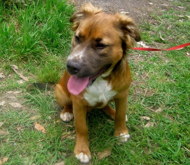 Rusty (date of birth may 2011), is a gorgeous typical bouncy puppy, eager to please, keen to investigate and a willing participant in playing. He has a longish coat, his breed mix is not known as he was rescued as a 6 week old puppy. He has lived in a family environment with young children. He looks like he is a border collie mix, golden retriever mix or even a rough collie mix. He has a lovely soft coat and he is very cuddly, not muscular in build at all. He looks like he is likely to grow to the size of a border collie but unlikely to get bigger then a golden retriever. He is learning to sit and is quite good on a lead for his age