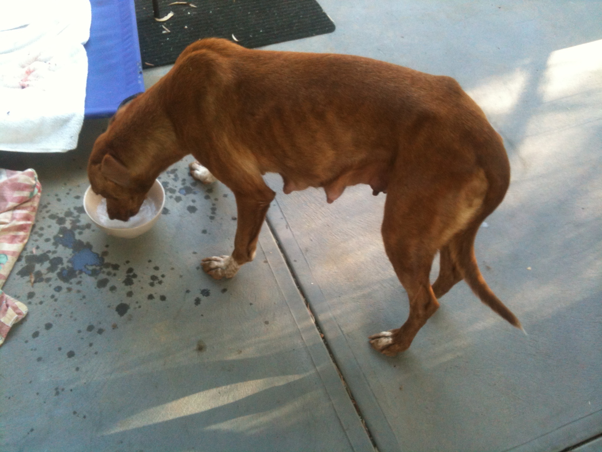 Bella was found roaming near belvedere/buffalo beach turn off yesterday evening. She is quite emaciated and obviously had not had food in some time. She looks like she has given birth recently, she loves her tummy tickled and she gets on with other dogs. Can you re-home this nice girl?