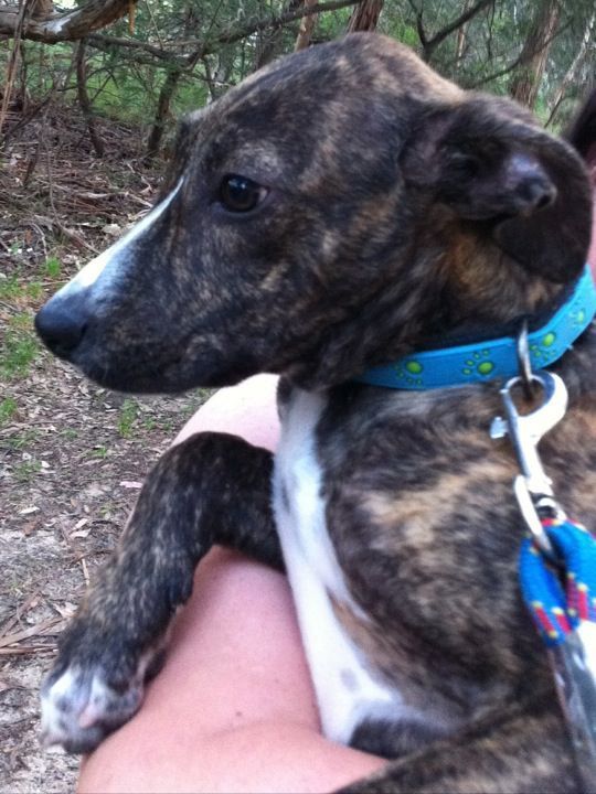 Hazel is a very sweet tempered, snuggly puppy, but she is shy and will need a calm home to help her build her confidence. She will mature to about the size of a large whippet, but with a slightly more solid build. She gets on well with other dogs and because she is very food oriented, is proving easy to train. Her best home will be a quiet one, where hazel will be able to learn to be more social in a gentle environment. Like most hounds, hazel loves to run, but is otherwise an easy-going puppy who will have moderate exercise needs. Typical of hounds, hazel has a short coat and feels the cold, so will not be suitable for an outside-only home. ***please read the next section about applying to adopt***