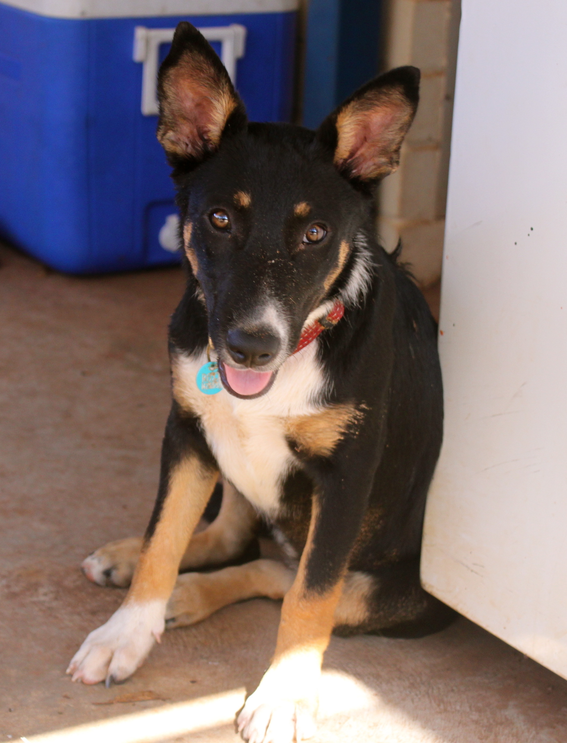 Roxy is a lovely, sweet natured five month old kelpie x blue heeler looking for a good home. She plays well with other dogs, and is great with children. Roxy has lots of energy and is always up for a run. She also has basic obedience training, but would benefit from and enjoy further instruction. Roxy comes with her own brand new bed