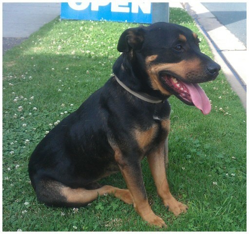 Have a look at this big spunk. This boy kiba has recently been surrendered to us after a relationship break up. As unfortunate as that is for him, he is now given a huge chance to find a brand new forever home. When this boy came in to care, he wasn’t in the best of conditions. He was badly underweight, had really long nails and was struggling with what i thought was little bit of doggie depression. After a few days and a lot of tlc, this boy is showing the better side of himself, which is a loving, loyal and playful boof. This gorgeous boy has eyes that just say “love me”. He is in between the size of the rottweiler and the staffy so by no means is he a tall/large dog. Kiba has a love for pretty much anything he does and anyone he meets. He loves water, loves other dogs, adores kids, gets on well with cats from what i have seen and his biggest love of all is hugs from his owner. Kiba is a very touchy dog in that he loves to be wherever you are to the point where he must be touching you. Whether it’s sitting on your feet or leaning against you, he just loves to be near you. This boy was previously housed with another dog and is currently around other dogs during the day but i still think he would be ok being an only boy. He would love to be able to get all of the love and attention. Kiba is unfortunately still quite underweight to the point where he looks a little out of proportion. We are working on not only having him put on some fat but also gaining some muscle as these breeds are known for their healthy stocky appearance. Kiba would suit almost any young family or couple. He would love a family that could take him for a walk, take him out for a swim or even down to the local doggie park. With the looks/colours of a rottweiler and the personality, height and talk of a staffy, this boy is a beautiful mix of breeds that will make the most perfect of companions