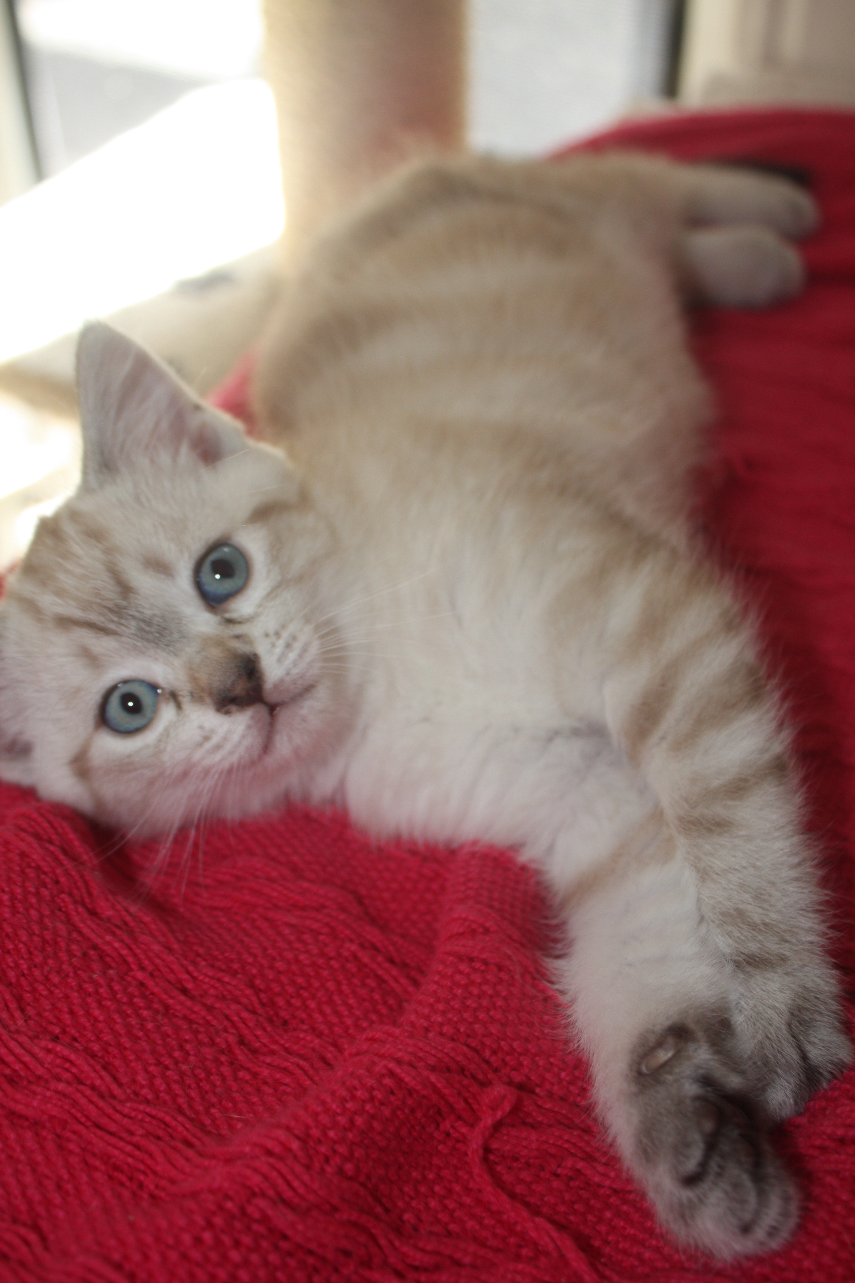 The beautiful and mischievious, miss skaify, was named after the very popular, v8 supercar driver mark skaife. Who, by the way, won his race the day she was born. One of the sociable kittens, skaify loves attention and the company of her litter mates. You will just fall in love with this little girl when she looks up at you, she has the most adorable face. Skaify would be very suited being adopted with a sister, or in a home that already has a cat who loves the attention of a kitten to play with. I will miss this little girl when she goes to her furrever home. Note: currently available for preadoption only, but ready to go to her new home in 2-3 weeks after her vet work is completed