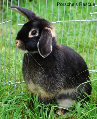 Sparkles was rescued from a vet clinic, after she came to them as a stray. She has been desexed and vaccinated, so is ready for her new home!sparkles is a lop cross (with ears that mostly flop unless excited) and has black otter markings. She is a quiet and gentle soul, who enjoys a pat. She takes a while to settle into a new environment, but with encouragement she soon realises who brings the food, and will then politely put her head forward for some attention. Sparkles is a calm and regal girl in her hutch, but once in the playpen turns into energizer bunny, doing more zoomies and binkies than any other rabbit! If you would like to enquire about Sparkles, please fill in an adoption form at our website: www. PorschesRescue.com