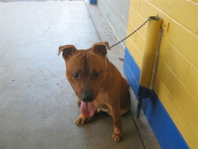 hi my name is red dog. . . . I don't think stafford rescue have named me properly yet. I'm arriving there on thurs 1st dec, it will be the first day of summer so if i was a girl they could have named me that!