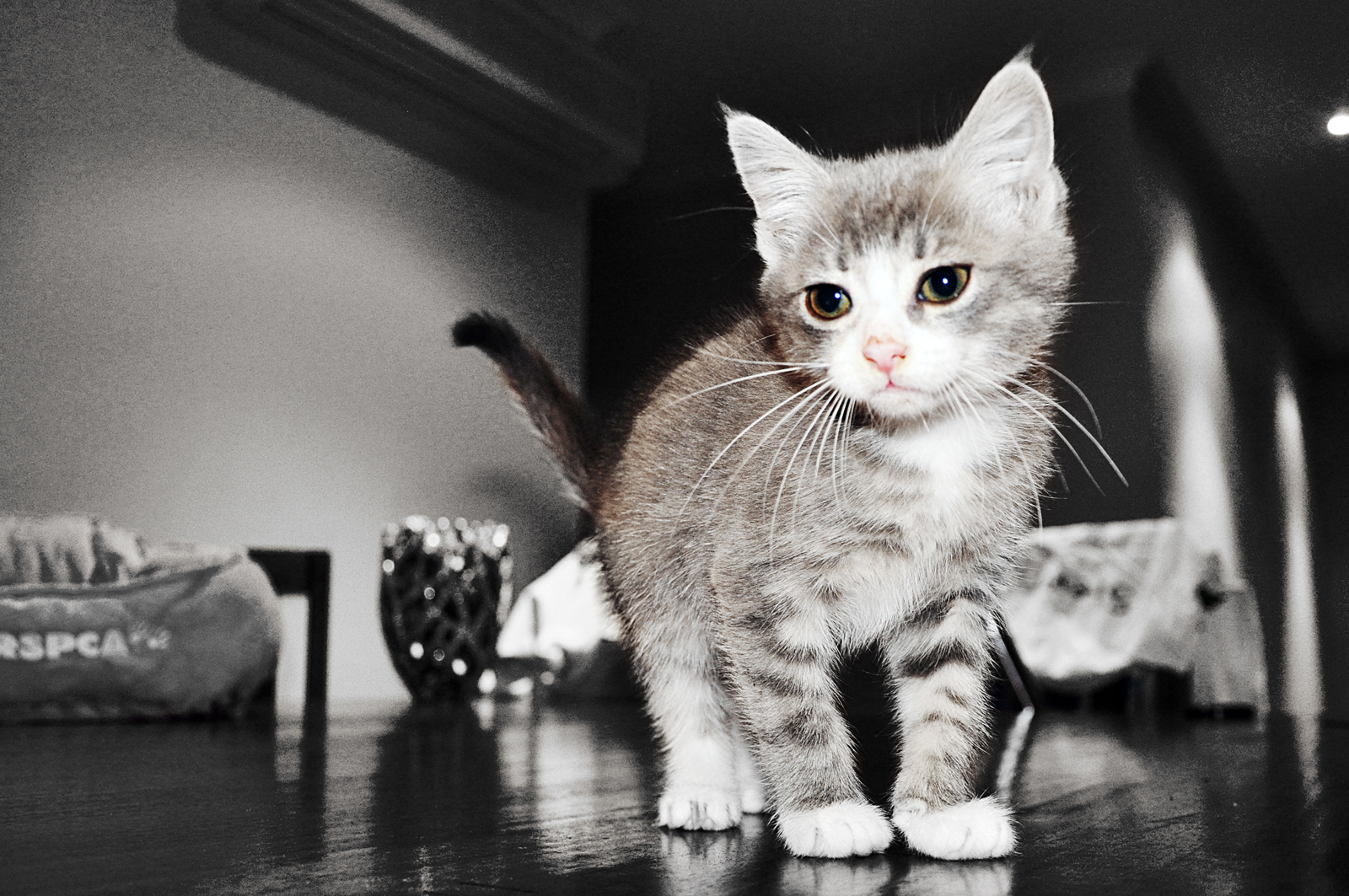 Wynston is the sweetest little guy! he is great with other cats, great with dogs, litter trained, very friendly, no fuss little man. Pictures dont do justice for how cute and sweet this little man really is!