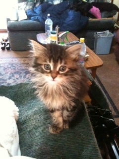 Angel is a sweet natured kitten who, along with her brothers, had a bumpy start in life. Angel is used to dogs and other cats and due to having three brothers and one older foster brother, will stand up for herself