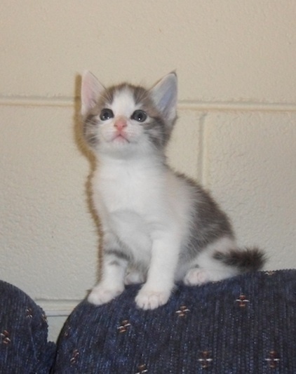 Honey is a very sweet grey and white kitten, the smallest in the litter and is a bit of a wee princess