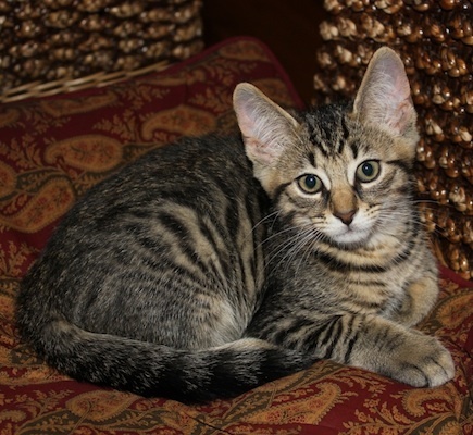 Ricky is a tabby who is very lovely and likes to snuggle when he's not playing. He has a bit of a red tinge to his fur like his mum