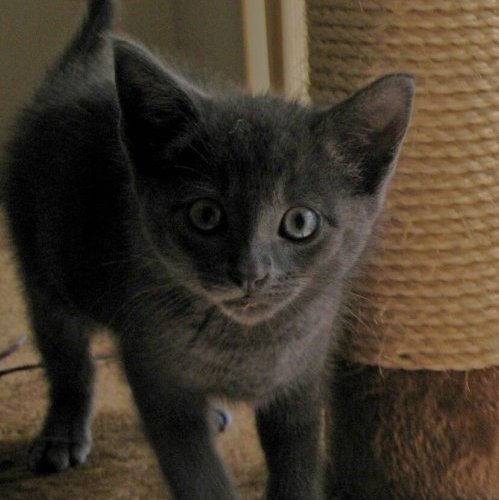Possum is a 7 week old blue tabby girl who is a real sweetheart. She is gentle and laid-back and just loves her cuddles. She is happy to play by herself or with her sister magic and is used to a small dog and other cats. She would suit a home with older children or another gentle cat as a friend. She is available for pre-adoption with a deposit and will be ready to go to her new home in a few weeks when she is big enough to have her vet work done
