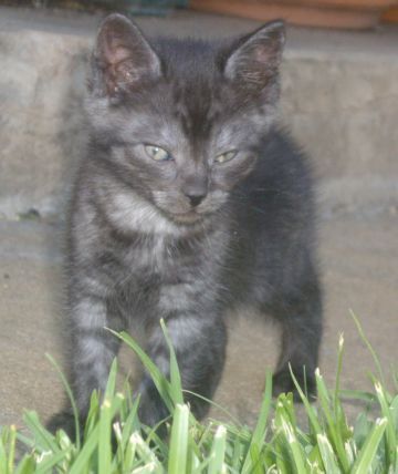 Cinders is gentle loving kitten who needs company. She has been born in care and kept mostly inside with access to outdoors during the day. She is litter trained and clean in her habits. She has a very sweet little face and an unusual colouring. She enjoys playing with toys or shiny tinsel and loves to be wherever her carer is and will be near you all day if she can be. Cinders will make a great kitten for a family