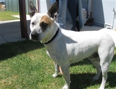 This dog is very friendly. He would make a great companion and is low maintenance. He was surrendered to the pound by a very regretful owner who was extremely sad to be losing her valued pet. He apparently did not get on well with the other male dog in her home but he gets on well with female dogs. He likes kids, the beach and playing with balls. The dog is certainly not comfortable in the pound environment despite the rangers' best efforts and is not himself. Pls contact alyson