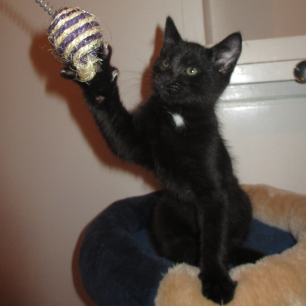 This charming young fellow is austin. He is a 10 week old male kitten with a perfect white locket on his chest. He is friendly, and affectionate. He has been raised in a home with young children so he would make a great family pet. He is available for pre-adoption and will be ready to go to his new home soon once he has had all his vet work done. Please contact his foster carer casey for more information