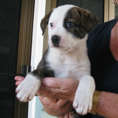 Alice would make a great companion for an older dog. She loves to play. Already close to 9 kgs she can take the rough and tumble. She is a friendly girl who is fast at learning and wanting to bond with people. She has learnt to use the dog door at her foster carer's place. She will need an active owner or family. She is a combination of loyal, loving breeds and should be a lovely lifelong pet. Her sister nelly has found a home and alice would live a playmate. Because we are close to the nsw/qld border our animals can go to either state. We do not transport animals interstate