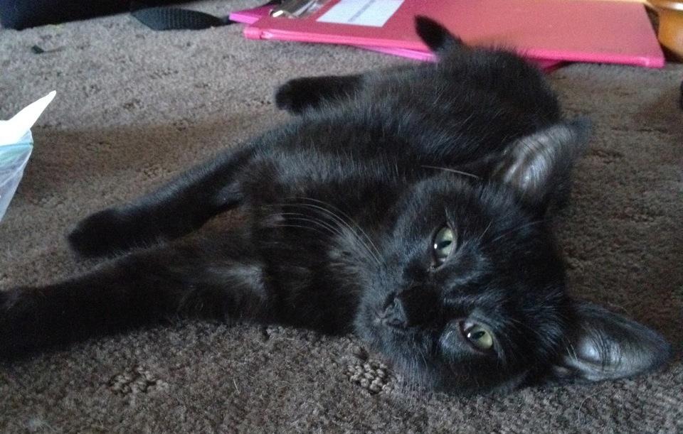 Polly is a quiet, beautiful and loveable black kitten. She is always up for some cuddles and will love to sleep in your lap. She is quiet and clumsy but also loves to play. She would make the perfect addition to anyones’ family. Polly will adapt to any other animal in your home, and would be perfect around children or the elderly. She is also very close to her brother and it would be lovely if they could be adopted together, although she will adapt as long as she has enough other company