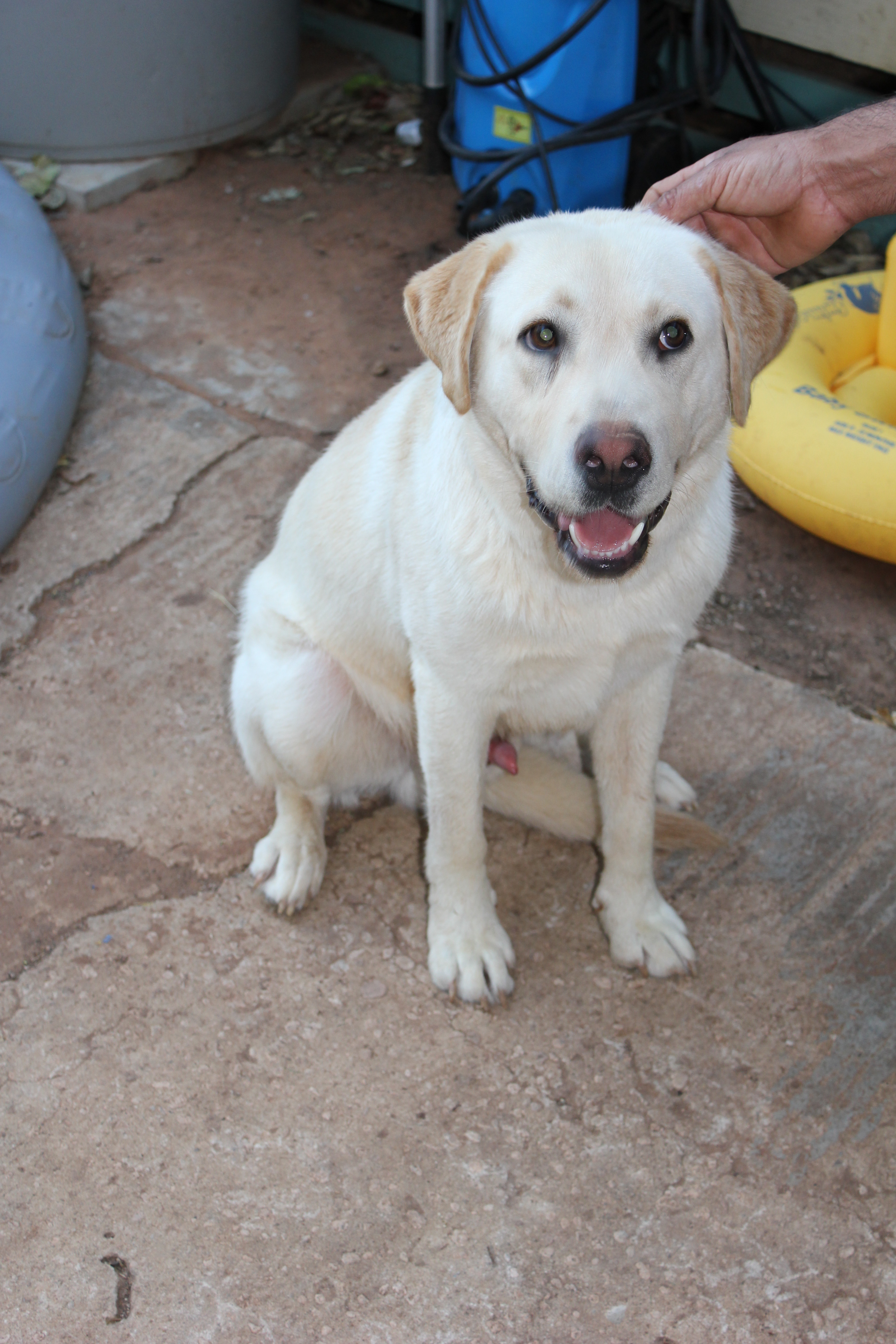 Ben is a pure bred labrador who was surrendered. He is delightfully friendly pup of 12 months who loves to play, especially with his food bowl or a ball. He loves children and would be gently with 4 and 6 year old children. Ben has no aggression and is not a barker