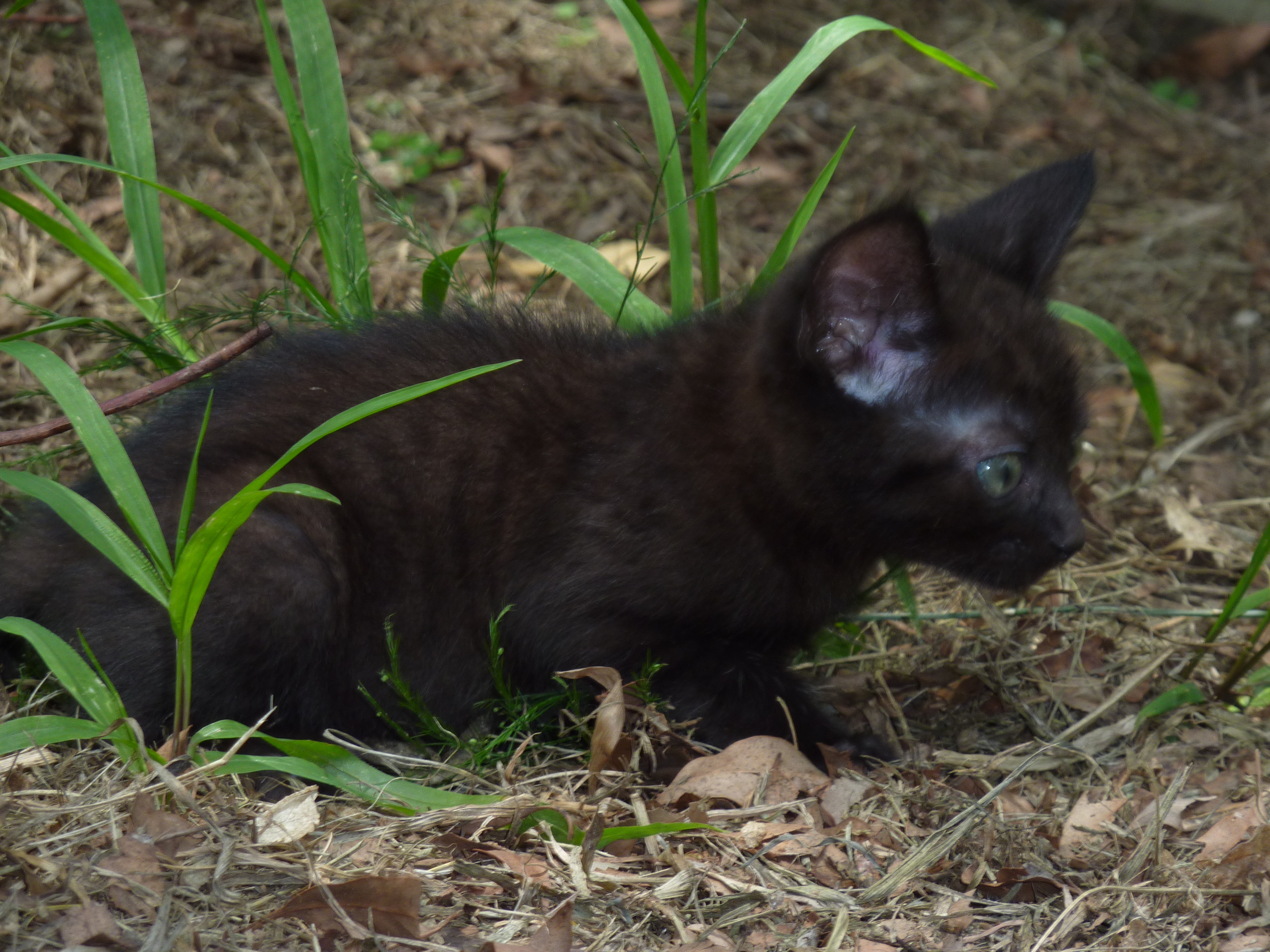 This male kitten is black and is the 4th biggest of the litter. He is pretty relaxed, but loves a good play too. He has been exposed to young children and likes it both inside and in the cat net area outside. Photo taken 2/01/2012
