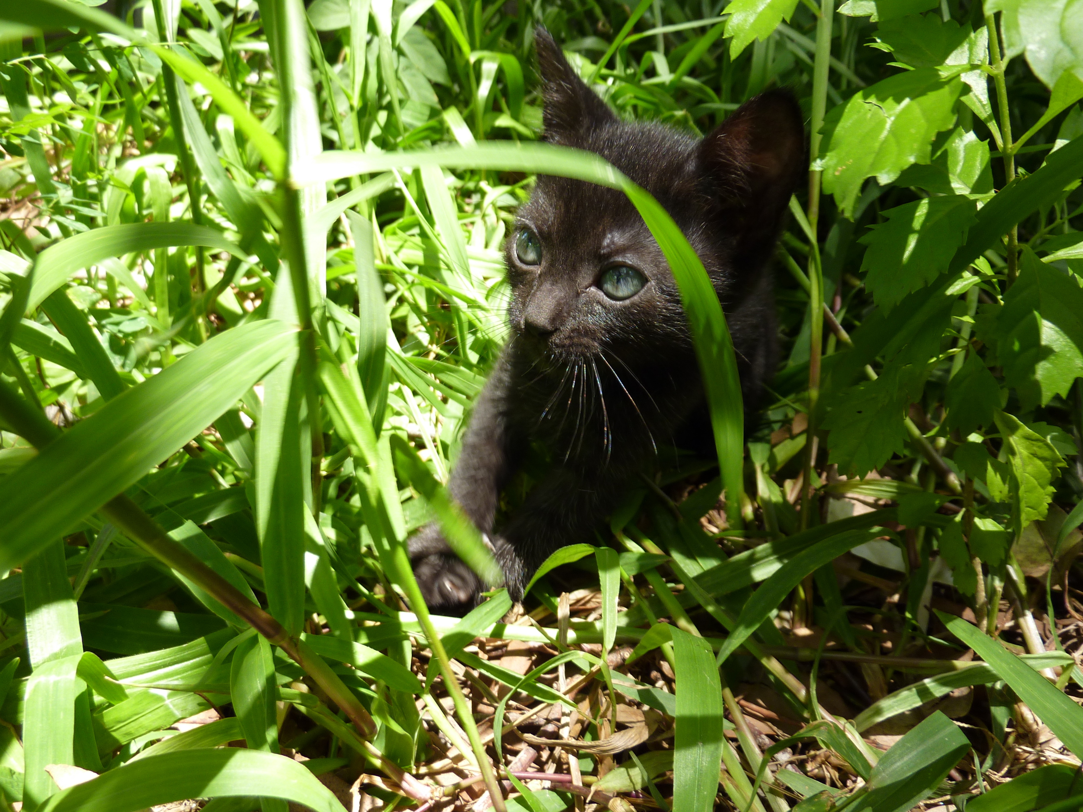 This female kitten is black with white flecks all through her fur. She is the 5th biggest of the litter. She was quite small to begin with but is catching up. She likes to play both with you and has the independence to play on her own. She is pretty sweet also. She has been exposed to young children and likes it both inside and in the cat net area outside. Photo taken 2/01/2012