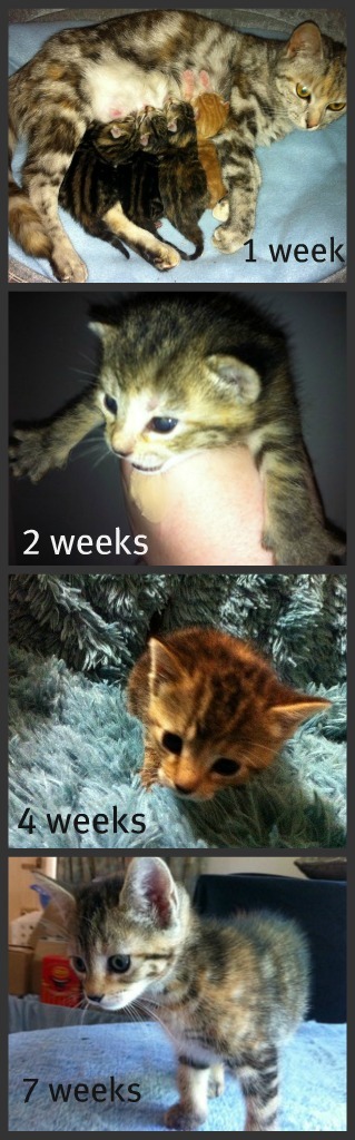 Clover and her 3 siblings were born in care and it has been my absolute pleasure to watch them grow and develop into wonderful little kittens. Clover is such a pretty little girl! she has gorgeous splotches of ginger throughout her tabby coat. Clover is a sweet, playful, happy kitten who will suit most homes. Clover will be ready to go to her new home at the end of january, but is available for pre-adoption now!