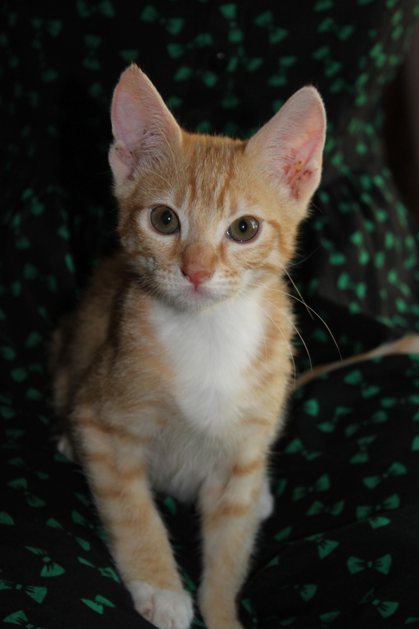 she, like her siblings finn and pennie (also available for adoption) are so gentle and love cuddles. Tara likes to snuggle into the crook of your neck which is really sweet, but she is more independent than her siblings. She constantly purrs when she is near people. Tara is unbelievably tame, and will let you do anything, she is so trusting and just sits there no matter what and purrs. Tara would be great for a family with children because she is so placid. She gets on well with other animals, she's being fostered with her two siblings and two other cats. Like her siblings tara is inquisitive and loves running around, jumping and playing. She loves cuddles, and curling up with her siblings or with her foster carer on the couch. Tara is an indoor kitten, and she is litterbox trained. Tara has been hand raised from when she was a couple of days old