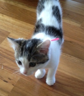 Cassie was found all alone in a country area at only three weeks of age, she has been hand reared since then, she is an independent little girl who loves to play, she hardly ever walks anywhere preferring to pounce and run, she is gentle and is used to living with children, cassie will make a very entertaining addition to your household. As she has a white nose she will need to be an indoor only cat to prevent her from being burned by the sun