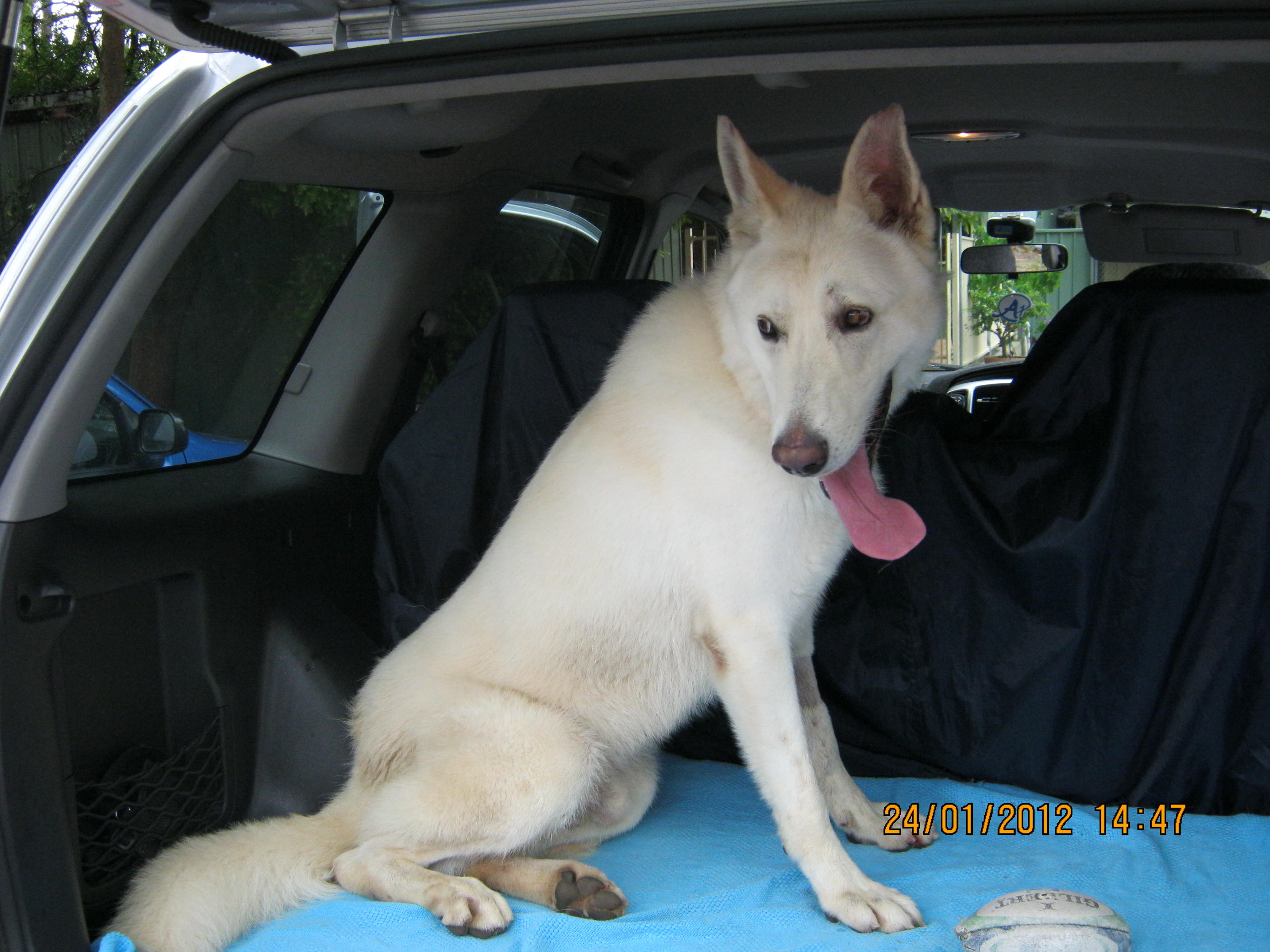 Casper is on trial with his new family. Casper is a well mannered and easy natured male white german shepherd who has come into care. A loving dog who takes food gentle from your hand but does need further training and socialisation. Casper is exciteable around other dogs and we are continuing with his socialisation and training. Casper has come into care after being found wandering the streets after the storms in sydney. Casper has no prior history as he was not microchipped. He is definately a pure white (swiss) shepherd who is underweight and has fly strike on the tips of ears. A gorgeous boy who will need a committed family who will provide him with daily exercise, inclusion in the family home and further basic obedience. Casper has been full vet checked, desexed, vacinated c7, heartworm tested negative and hydrobathed. Due to his white coat we recommend casper be provided with adequate shade and shelter and also be allowed access to the home. For more information on casper please contact linda