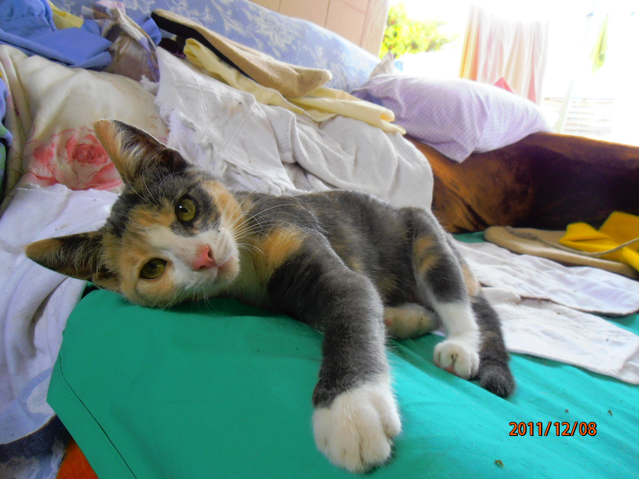 sweet little maddie is looking for her loving forever home. She is very smoochy, affectionate, purrs a lot, playful and very friendly, just what one wants in a kitten