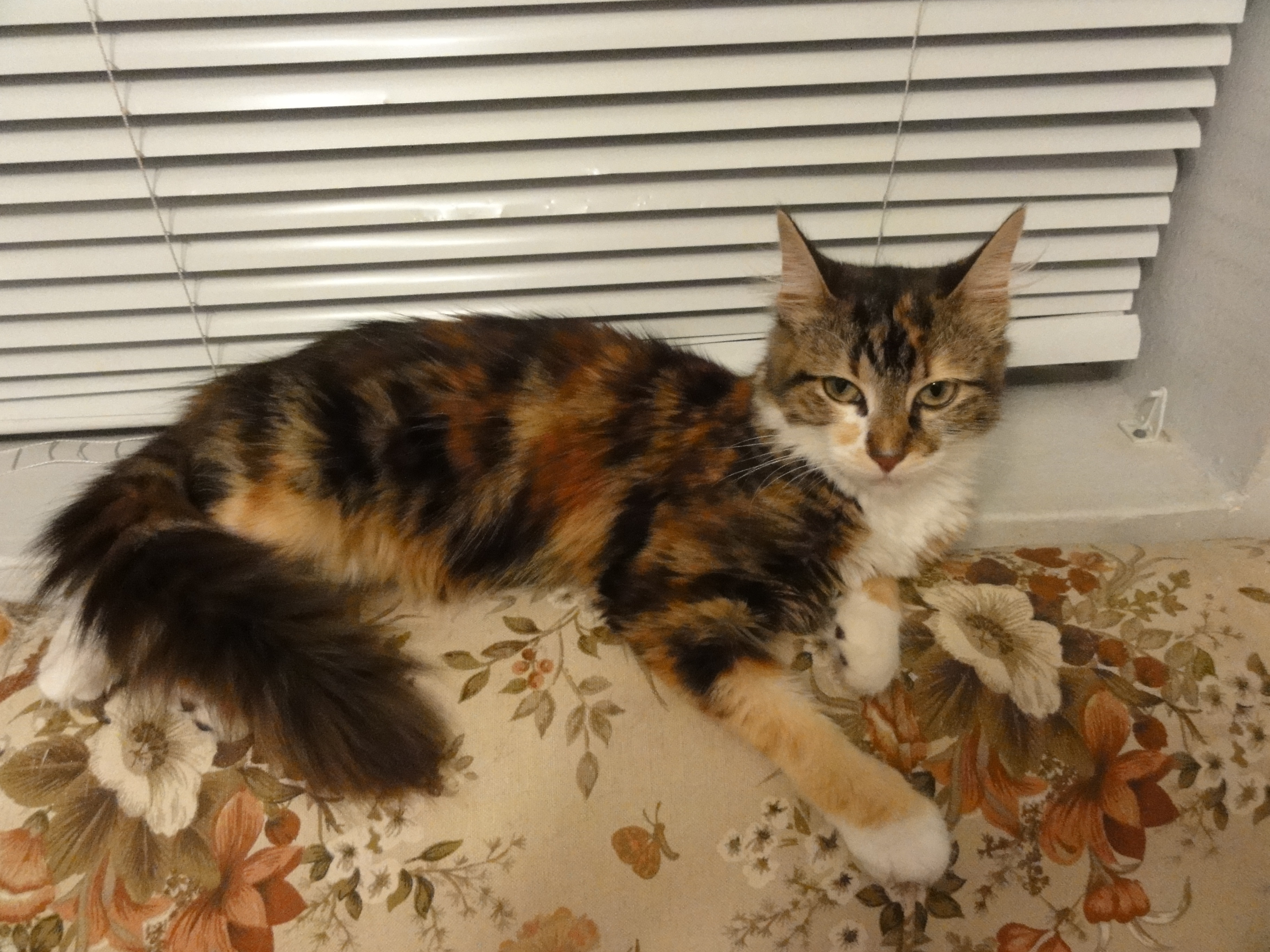 Memo has come to us after being mistreated by a previous owner quite underweight and scruffy. But she has not let her past faze her at all. She's the loveliest little girl that we have ever had the pleasure of fostering. She’s so cheerful, friendly and very loving. She absolutely loves attention and will always be ready for a hug. I don't think i've ever been able to say this about any other cat but she loves being picked up. Pick her up to hold her and she will start purring immediately, give her a pat and she starts purring immediately, in fact, just look in her direction and she is absolutely delighted!