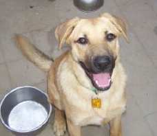Sandy is a happy, goofy boy. He is learning basic obedience and will sit for his dinner. He is very friendly and great with other dogs. Sandy needs to be allowed inside with the family when they are home. He is still a puppy at heart and is not always aware of his large size, but he is learning and is eager to please
