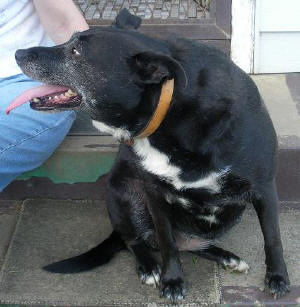 grace's owner has lavished her love and care on her but sadly now needs to re-home her to a good home due to ill health. Grace is a mostly black, short-haired dog who is now in her more sedate middle years and would suit a quiet home environment without young children. Grace was adopted from the rspca when she was about 12 months old together with joy. She is a lovely black, short-haired girl and it was suggested that she would not be a good match with young children, which was fine as her owner was a single lady. Grace would occasionally be wary with some men and is a cautious dog around strangers so may initially bark at them but, if she takes to them, would be as very loyal and loving as she is with her current owner. Grace would be happiest with a reasonably quiet situation. She is not used to being walked or playing games but could well enjoy a bit more activity. grace is house trained but would benefit from some more obedience training. Grace happily lies about outside or inside and this has probably led to her being somewhat overweight! despite this, she is in otherwise good health. She is a typical dog and barks at cats and keeps an ear out for anything that's going on around the place. sadly, her owner is too unwell to care for grace or joy